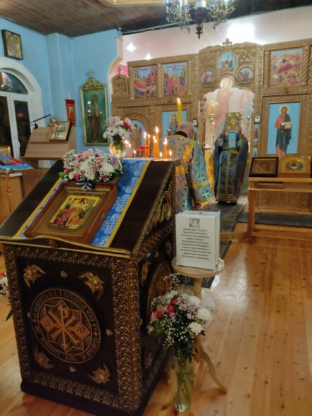 Перевод: Чистейший храм Спасителя, многоценный чертог и Дева, священное сокровище славы Божией, в сей день вводится в дом Господень, вводя благодать с Собою, ту, что в Духе Божественном. Ее воспевают Ангелы Божии; Она – скиния Небесная.